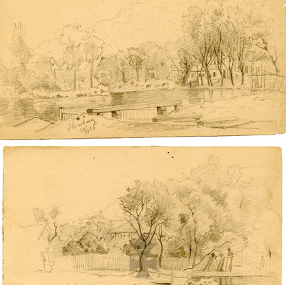 Gustav Ochs (15.4.1825 /7.11.1858 in Magdeburg), was one of eleven children born to ur-ancestor Peter Ludwig Heinrich Ochs, born 15.11.1788, and his wife, Christiane Schaefer, whom he married in 1817. Two of his brothers, Walter and Albert, were also trained artists but switched to photography and set up a studio together. Gustav did not join them; apparently he spent a lot of time in Switzerland, judging by the number of drawings he did there. According to his descendant Peter Paul Ochs, Gustav was the most talented of them all, but died very young, aged only thirty three.